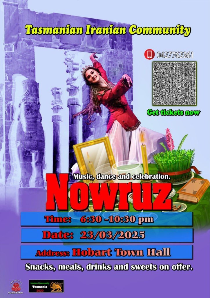 جامعه ایرانیان تازمانیا مفتخر است که نوروز امسال را در سالن مجلل و زیبای شهرداری هوبارت با کمک تیمی همدل و باتجربه، هرچه باشکوهتر برپا کند.